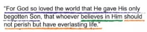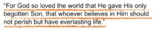 “For God so loved the world that He gave His only begotten Son, that whoever believes in Him should not perish but have everlasting life.”