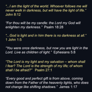 For some, light comes in another form. Reading God’s Word brings illumination. Its glow warms, encourages, and enlightens us because it is God’s love letter to us.